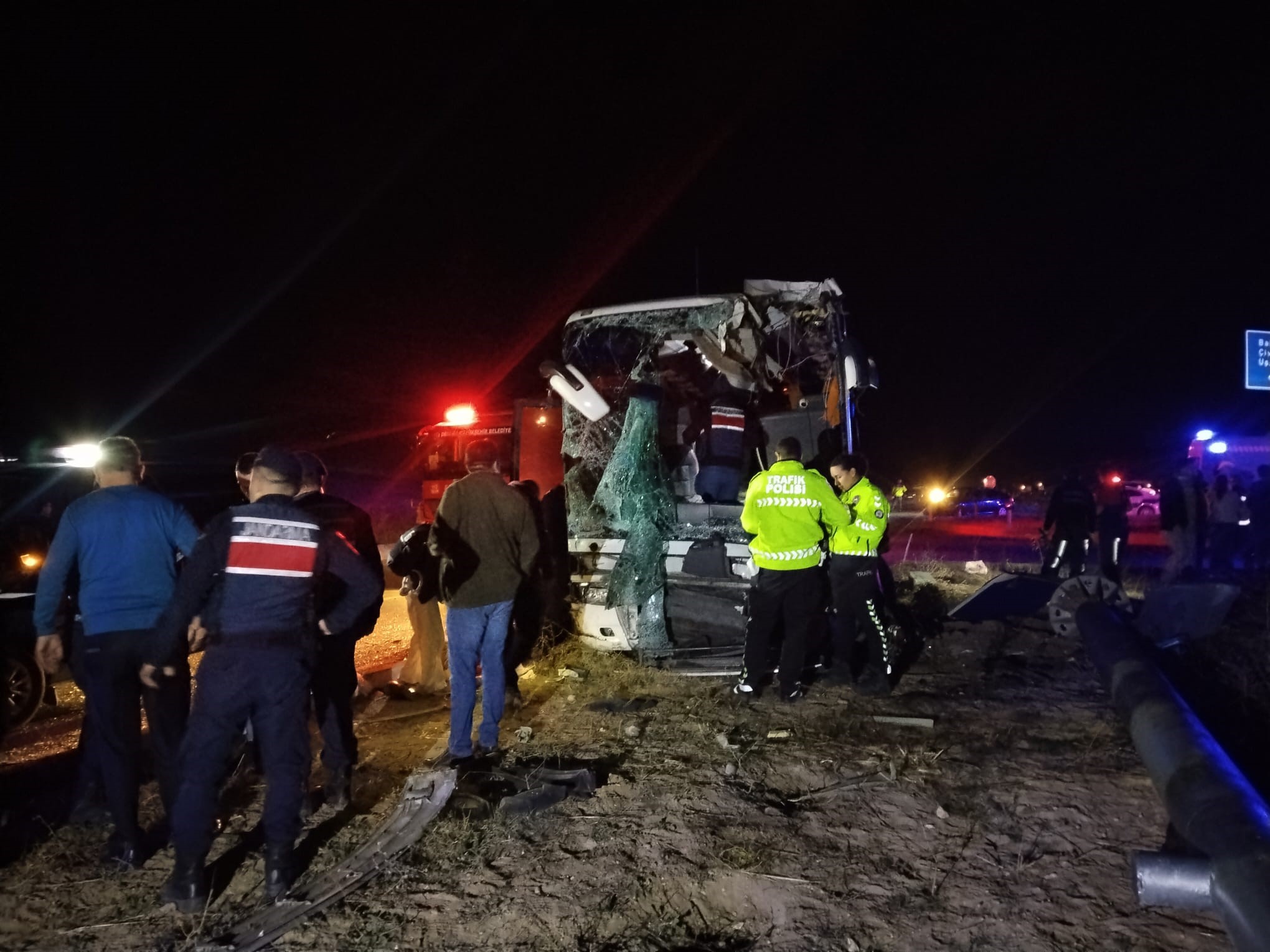 Çarpışmanın etkisiyle minibüs devrilirken, yolcu otobüsü de yoldan çıktı. Çevredeki vatandaşların 112 Acil Çağrı Merkezine ihbarı üzerine bölgeye çok sayıda jandarma, itfaiye ve sağlık ekibi sevk edildi.