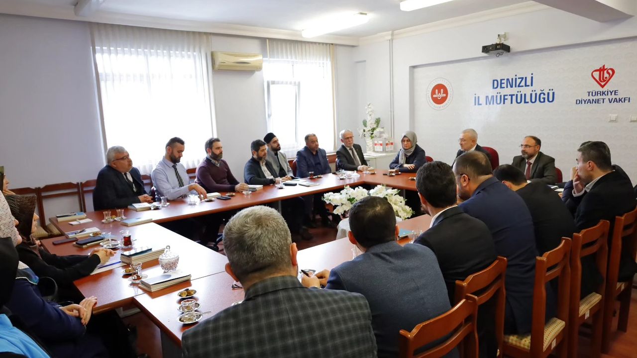 Denizli Haber - Ramazan ayının manevi atmosferine en uygun şekilde hazırlanılması amacıyla düzenlenen toplantıda, ibadetlerin daha bilinçli ve düzenli bir şekilde icra edilmesi için yapılacak çalışmalar masaya yatırıldı. Özellikle Osmanlı’dan günümüze uzanan köklü bir gelenek olan Enderun usulü teravih namazının Denizli’de uygulanmasına yönelik planlamalar detaylı biçimde ele alınırken, Cumhur müezzinliği uygulaması üzerine de görev dağılımları ve organizasyon süreci değerlendirildi.
