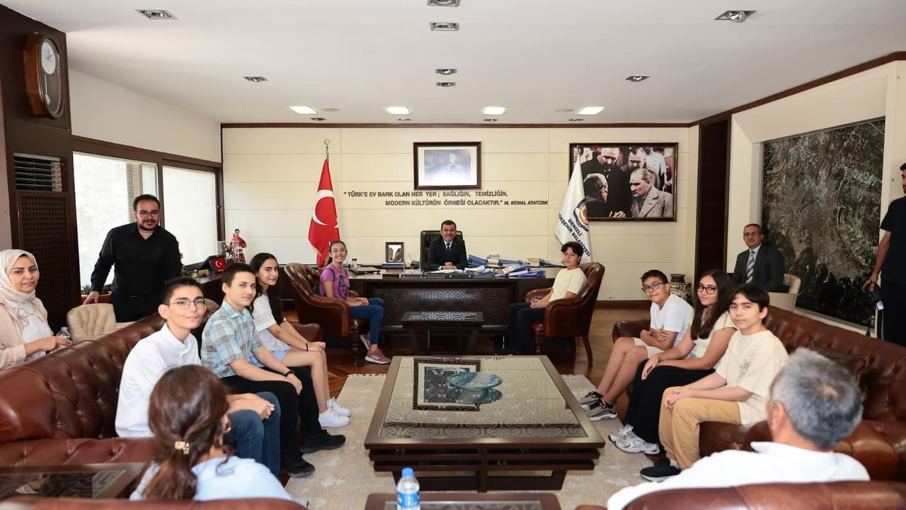 Denizli Haber - Başkan Çavuşoğlu, aileleriyle birlikte ziyarete gelen öğrencileri tek tek tebrik ederek başarılarının gurur verici olduğunu ifade etti. Öğrencilerle yakından ilgilenen Başkan Çavuşoğlu, hangi liseye gitmek istediklerini sordu, hedeflerini dinledi. Ziyarette yaptığı konuşmada Başkan Çavuşoğlu, “Hepinizi tebrik ediyorum. Hem harcadığınız emek için, hem de harcadığınız emeğin karşılığını aldığınız için keyifli bir sona ulaştınız. Ailelerinize de teşekkür etmek lazım. Bu zor süreçte en çok emeği onlar harcamıştır. Aileniz gece gündüz sizler için seferber olmuştur” dedi.