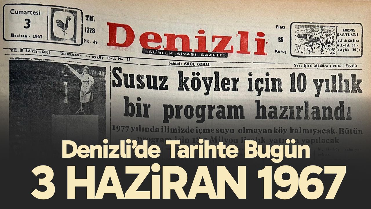 3 Haziran 1967 tarihinde Denizli’de yayımlanan habere göre, içme suyu olmayan köyler için 10 yıllık dev bir yatırım planı hazırlandı. Hedef, 1977 yılına kadar il sınırları içinde susuz köy bırakmamak. Bu büyük hedef için toplam 18,5 milyon liralık yatırım yapılması planlanıyor. Program, il genelindeki köylerin içme suyu ihtiyacını karşılamak amacıyla hayata geçirilecek.