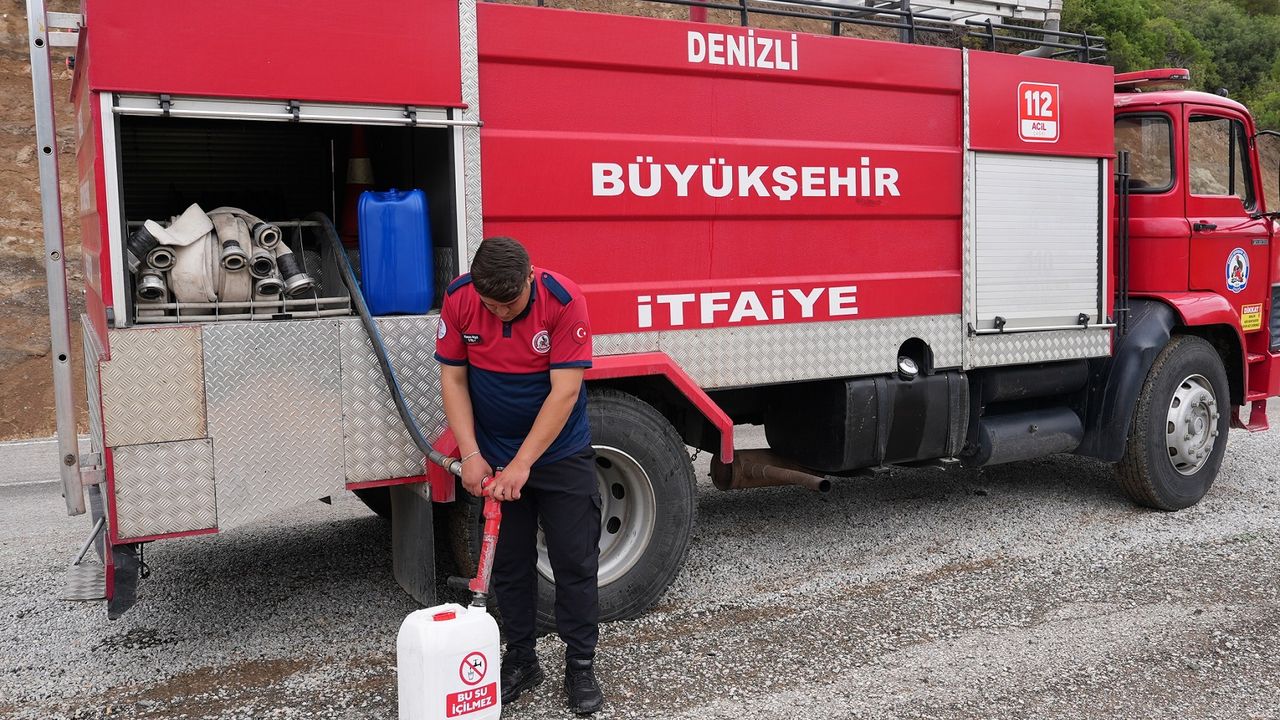 Denizli Haber - Bidonların üzerinde "Yangınla İlk Müdahale Suyu", "İçinde su var, bu su içilmez" ve "112 Acil Çağrı" uyarıları bulunuyor. Amaç, özellikle yol kenarında başlayan küçük çaplı yangınlara vatandaşların ilk müdahaleyi yapabilmesini sağlamak.