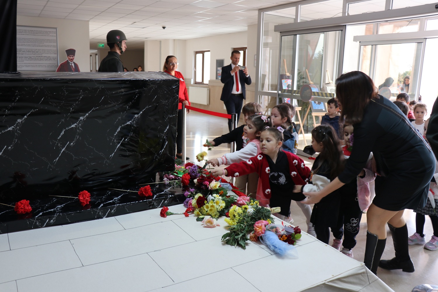 Denizli Haber - Milli Eğitim Bakanlığı Türkiye Yüzyılı Maarif Modeli kapsamında okullarda düzenlerler etkinliklere Denizli Merkezefendi Necla Ergün Abalıoğlu Ticaret ve Teknik Anadolu Lisesi öğrencileri sembolik Anıtkabir ile katıldı. Öğrenciler tarafından hazırlanan sembolik Anıtkabir'e ilkokul ve ortaokul öğrencileri ziyarette bulundu. Ankara'ya gitme fırsatı bulamayan minik öğrenciler Atatürk maneviyatını yaşama fırsatı buldu. Sembolik Anıtkabir'e çiçek bırakan öğrencilere Atatürk'ün hayatı hakkında seminer verildi.