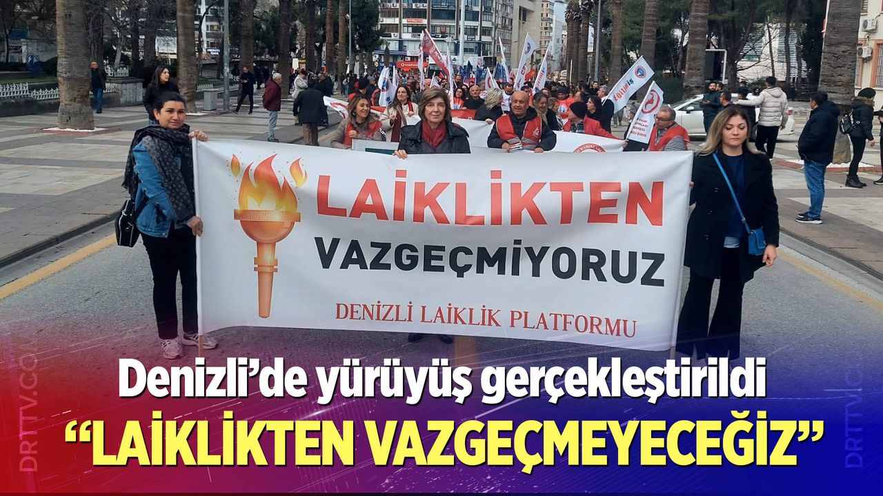 Denizli Haber- Denizli Laiklik Platformu’nun öncülüğünde gerçekleştirilen yürüyüşe sivil toplum kuruluşları, sendikalar, odalar ve siyasi partilerden oluşan çok sayıda vatandaş katılım sağladı. Gazi İlkokulu önünde toplanan vatandaşlar sloganlar eşliğinde Delikliçınar Meydanı’na yürürken, Denizli Barosu Kadın Hakları Komisyonu Başkanı Merve Öğüt, Türkiye Cumhuriyeti’nin laiklik ilkesinden ayrılmasına asla izin vermeyeceklerini söyledi. Topluluk adına açıklamalarda bulunan Öğüt, laikliğin bilinçli bir şekilde aşındırıldığını ifade ederek, “Laiklik din karşıtlığı değildir. Aksine laiklik din ve vicdan özgürlüğünü devlet güvencesi altında olmasıdır. Devletin tüm inançlara eşit mesafede durması gerekiyor” ifadelerini kullandı.