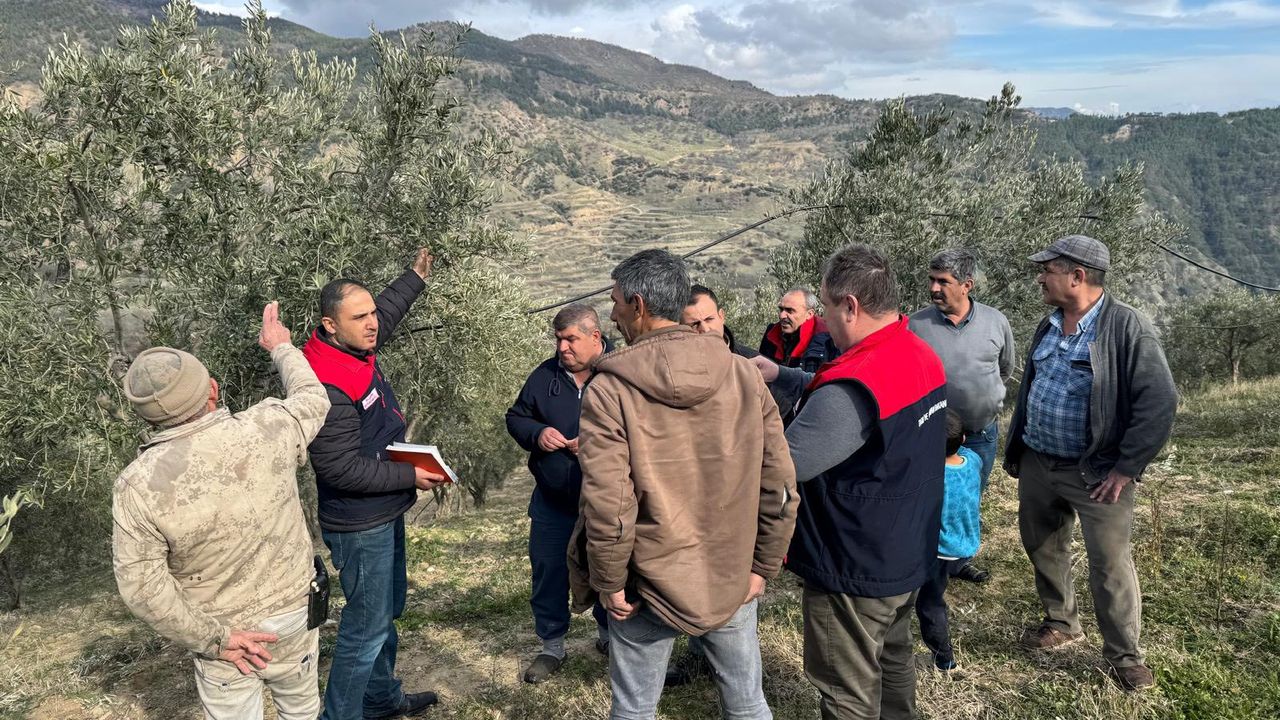 Sahada uygulamalı olarak düzenlenen eğitimde üreticilere, zeytin yetiştiriciliğinde doğru teknikler, hastalık ve zararlılarla etkin mücadele yöntemleri ile verimli ve sürdürülebilir üretim uygulamaları anlatıldı. Teknik personel tarafından gerçekleştirilen anlatımlarda, kaliteli ve yüksek verimli üretim için uygulanması gereken yöntemler üreticilere yerinde gösterildi.
