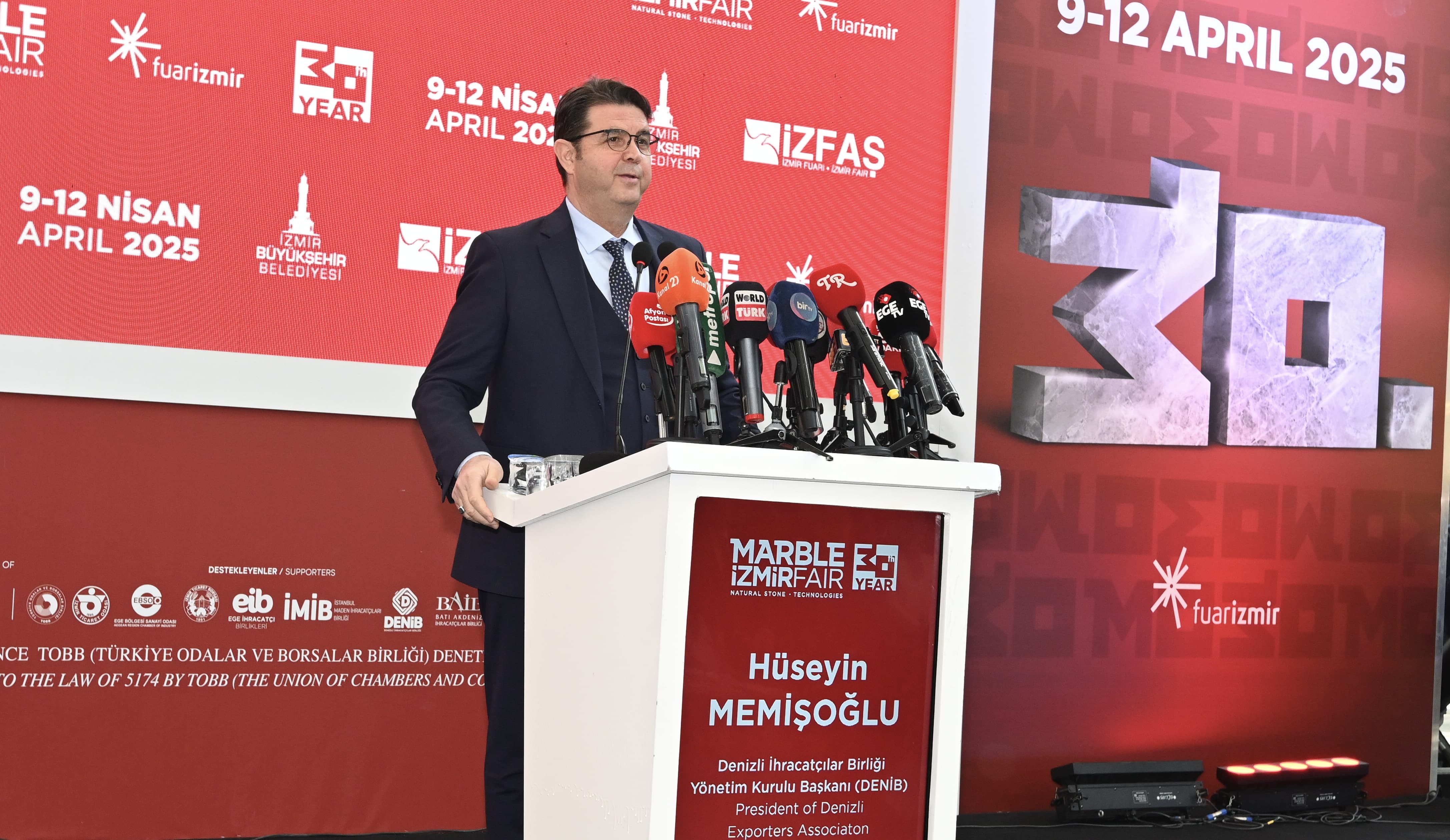 Marble İzmir Uluslararası Doğaltaş ve Teknolojileri Fuarı’nın açılış konuşmasında fuar organizasyonu ve doğal taş sektörü ihracat verileri hakkında görüşlerini paylaşan DENİB Başkanı Hüseyin Memişoğlu şunları söyledi: