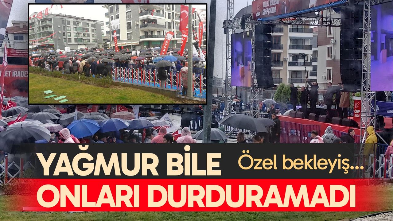 Miting öncesi yağmurluk ve şemsiyeleriyle alanı dolduran vatandaşlar, olumsuz hava koşullarına aldırış etmeden coşkuyla bekleyişini sürdürdü. Miting alanında toplanan kalabalığın heyecanı dikkat çekerken, Özel’in hem açılışta hem de mitingde önemli mesajlar vermesi öngörülüyor.