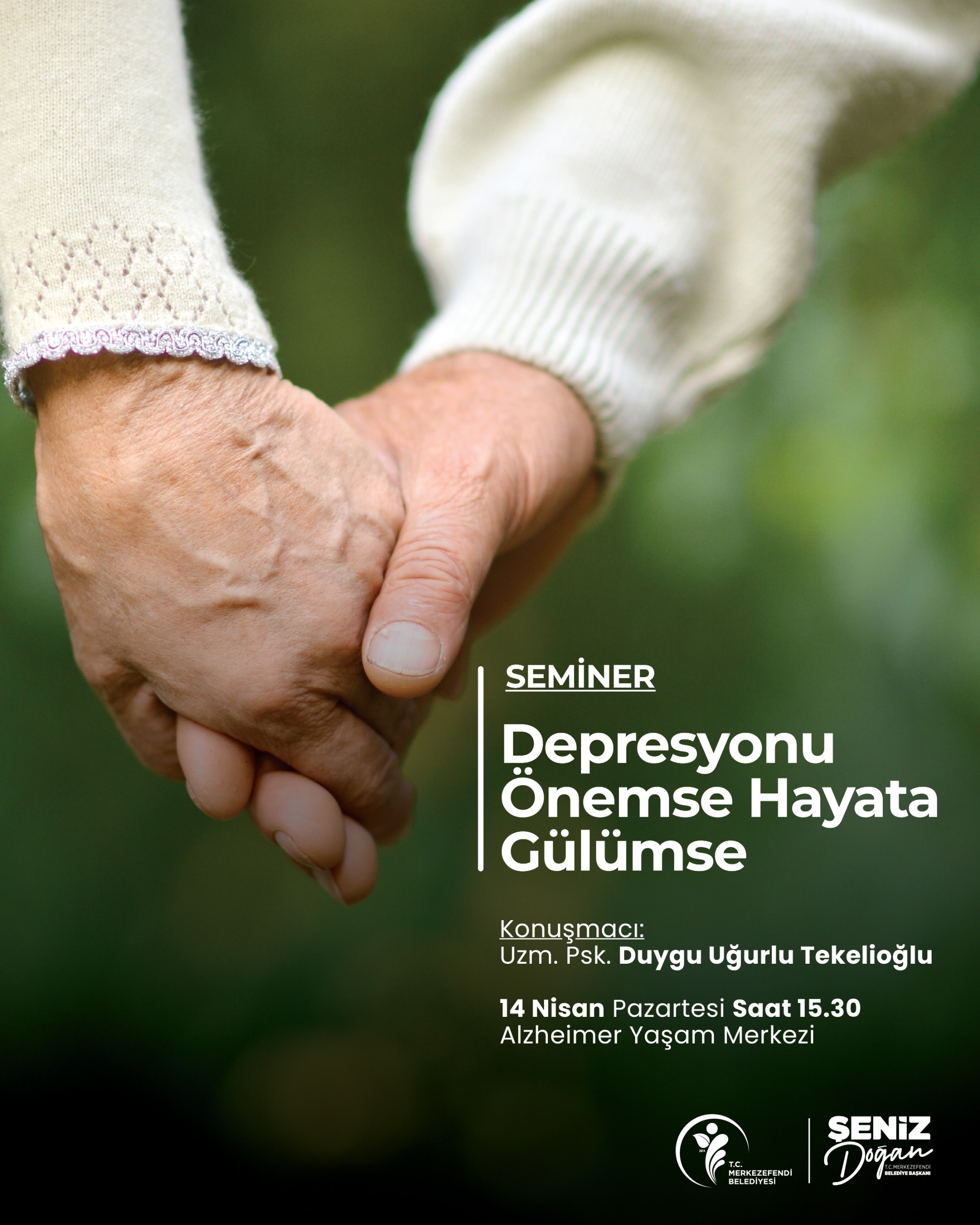 Denizli’nin ilk Alzheimer Yaşam Merkezi’ni ilçeye kazandırarak büyüklerin hayatını kolaylaştıran Merkezefendi Belediyesi çalışmalarına devam ediyor. Alzheimer rahatsızlığı bulunan büyüklerin sosyal hayata katılımına katkı sağlayan, ailelerine de destek veren Merkezefendi Belediyesi tarafından 14 Nisan Pazartesi günü saat 15.30’da Alzheimer Yaşam Merkezi’nde ‘Depresyonu Önemse Hayata Gülümse’ konulu bir seminer düzenlenecek.