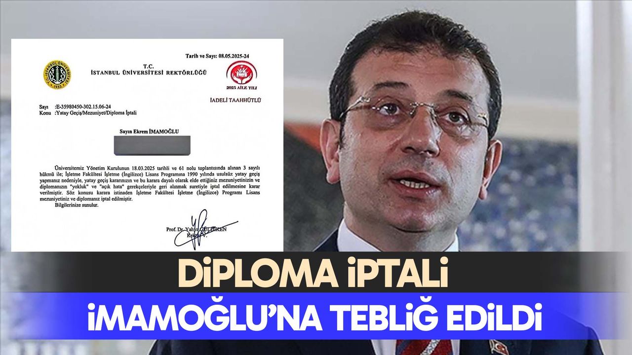 İstanbul Büyükşehir Belediyesine (İBB) yönelik yolsuzluk soruşturması kapsamında tutuklanmasının ardından görevinden uzaklaştırılan Ekrem İmamoğlu’na İstanbul Üniversitesi tarafından diplomasının iptal edildiği bildirildi. İstanbul Üniversitesi Yönetim Kurulu’nun 18 Mart tarihli kararında, İmamoğlu’nun 1990 yılında İşletme Fakültesi İşletme (İngilizce) Lisans Programına usulsüz yatay geçiş yaptığı belirtilerek, ’yokluk’ ve ’açık hata’ gerekçesiyle mezuniyet ve diploma iptali gerçekleştirildi. Karar, üniversite tarafından İmamoğlu’na tebliğ edildi.
