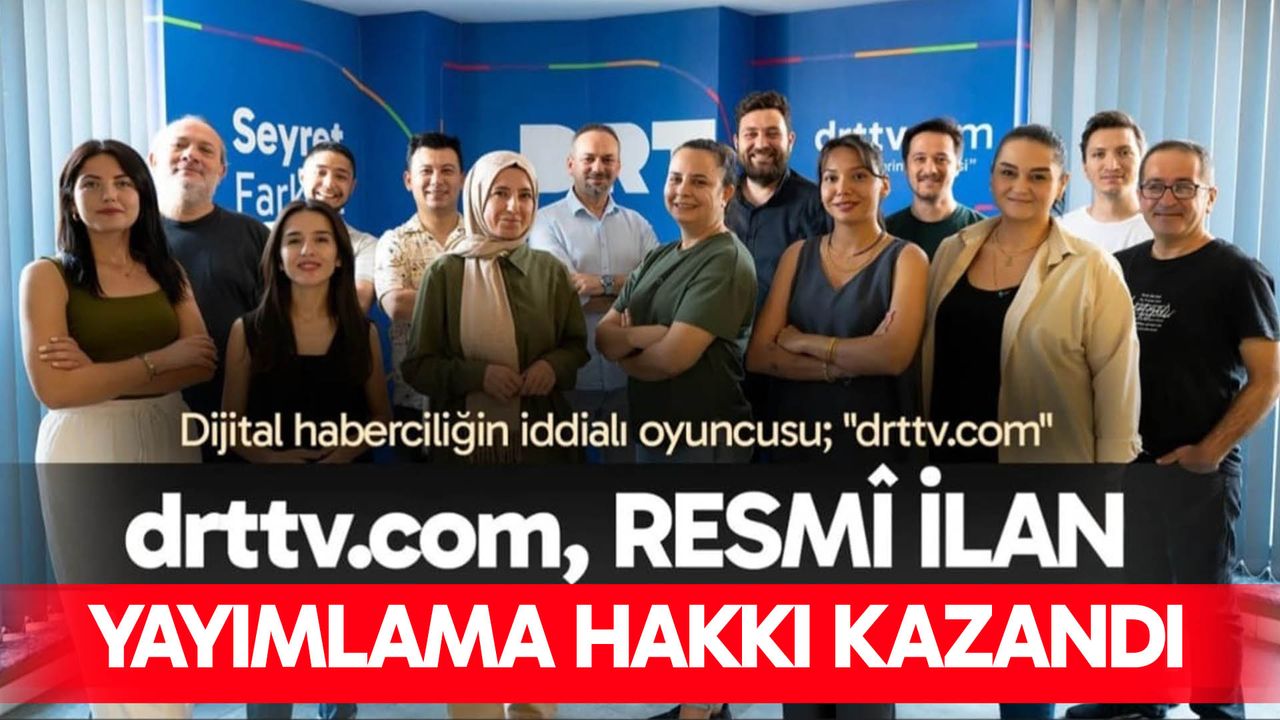 Basın İlan Kurumu tarafından yapılan denetim ve değerlendirmeler sonucunda resmi ilan yayımlama hakkını kazanan drttv.com, Türkiye’de sayılı dijital medya platformları arasında yerini aldı. Drttv.com etik ilkelere uyarak, kamuoyunu doğru bilgilendirme misyonu ile şeffaf, tarafsız ve hızlı habercilik anlayışı çerçevesinde, elde ettiği hakla yeni bir dönemece girdi. Denizli merkezli dijital medya organları arasında resmî ilan alma hakkına kavuşan sayılı haber sitelerinden biri olma unvanını da kazanan drttv.com, yaptığı teknik yatırımlar, özgün içerik üretimi ve güçlü kadrosuyla dikkat çekiyor. İki kat kadro (16 gazeteci) ve iki kat tekil ziyaretci trafiği ile başarılı haberlere imza atan drttv.com, "ses getiren özel haber dosyaları, araştırma haberleri ve röportajlar" ile adından söz ettirmeye ve önümüzdeki süreçte çalışmalarını daha da ileriye taşımayı hedefliyor.