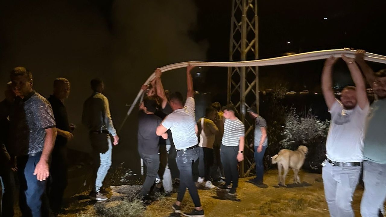 Alevleri gören davetliler, eğlenceyi yarıda bırakarak yangına müdahale etti.