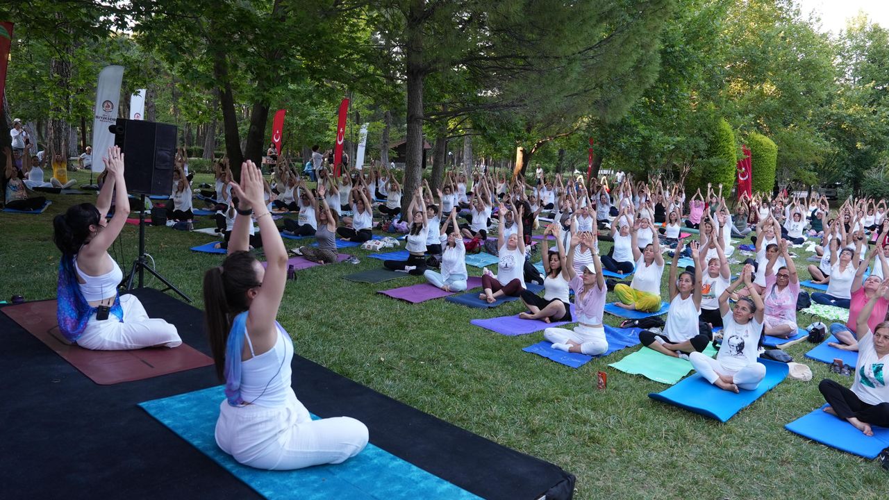 Denizli Haber - Denizli Büyükşehir Belediyesi tarafından “Dünya Yoga Günü” kapsamında düzenlenen yoga etkinliği, vatandaşlardan büyük ilgi gördü. Çamlık Parkı’nda gerçekleştirilen etkinliğe yaklaşık 300 kadın katıldı. Denizli Büyükşehir Belediyesi Gençlik ve Spor Hizmetleri Dairesi Başkanlığı tarafından organize edilen etkinliğe, Büyükşehir Belediyesi’nin yoga kurslarına katılan kadın kursiyerlerin yanı sıra yoga yapmaya ilgi duyan vatandaşlar da katıldı.