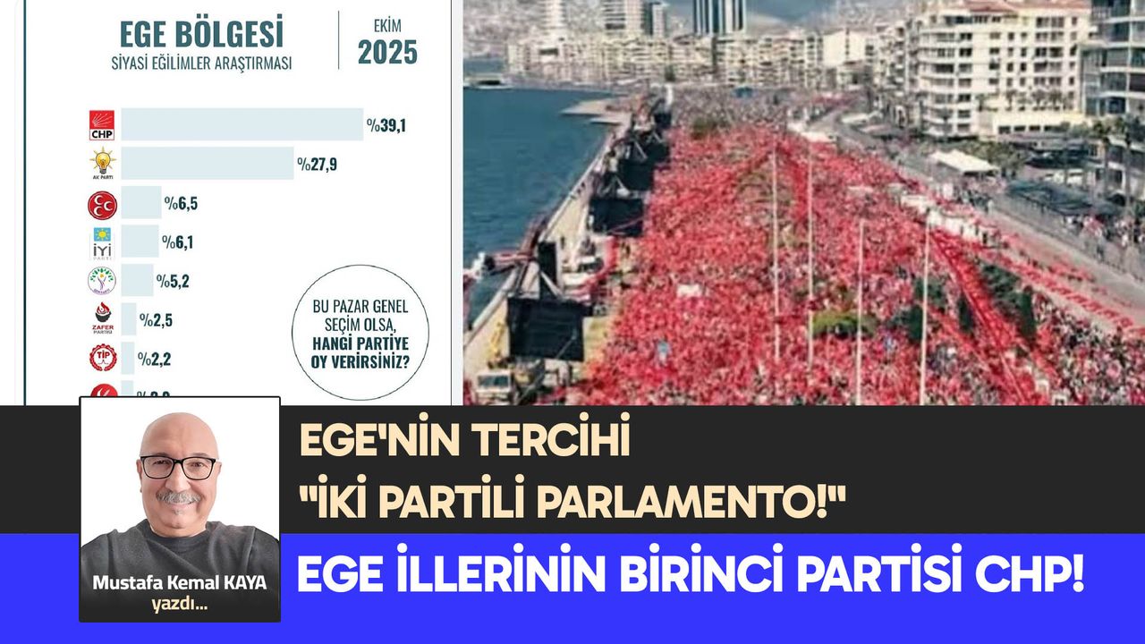 Kısacası Ege Bölgesi illerinin seçmeni Ankara'ya, TBMM'ye sadece CHP ve AK Parti'li vekilleri göndermeyi tercih ediyor. Bu sonuca göre Ege'li seçmenin niyeti; "İki partili parlamento ve iki partili siyaset."