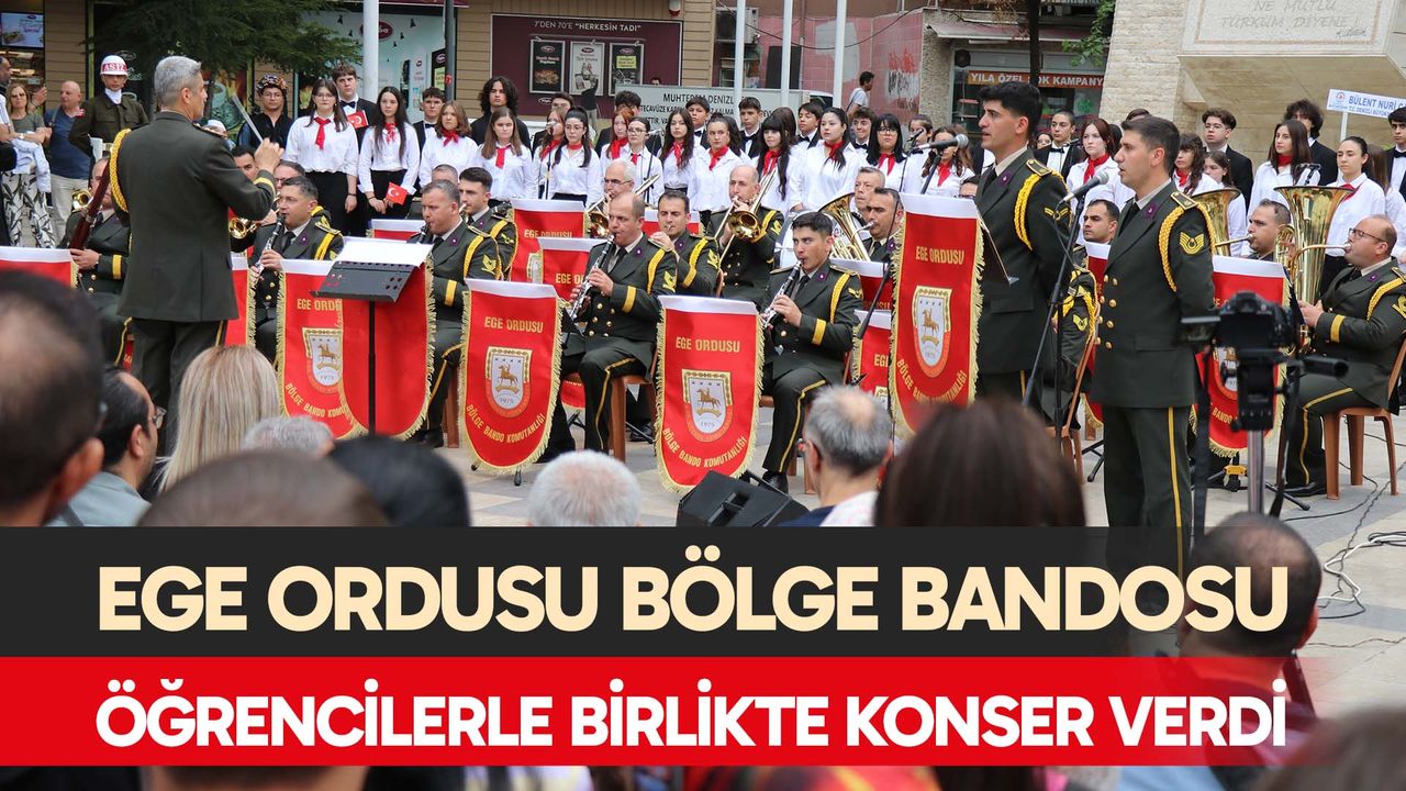 Bando Yarbay Gökhan Aşkın şefliğinde 35 asker ve 80 öğrenci milli marşlar ve şarkılardan oluşan repertuvarı seslendirdi. Konser etkinliğine özellikle çocuklu ailelerin ilgisi ise dikkatlerden kaçmadı. 9 aydır konser için öğrencilerin hazırlandığını belirten Hakkı Dereköylü Güzel Sanatlar Lisesi Müdürü Sinan Demircan, "19 Mayıs Atatürk'ü Anma Gençlik ve Spor Bayramı kapsamında Ege Ordu Bando Takımı ile beraber Hakkı Dereköylü Güzel Sanatlar Lisesi korosu ve Denizli'de ilk kez ortak bir çalışma yaptı. Vatandaşlarımızın bayramını mutlu ve coşkulu bir şekilde kutluyoruz. Çalışmalarımız 9 ay öncesinden planlandı. Aynı repertuar üzerine çalıştık. 80 öğrenci koroda görev alacak. 35 bando astsubay da koroda yer alıyor" dedi.