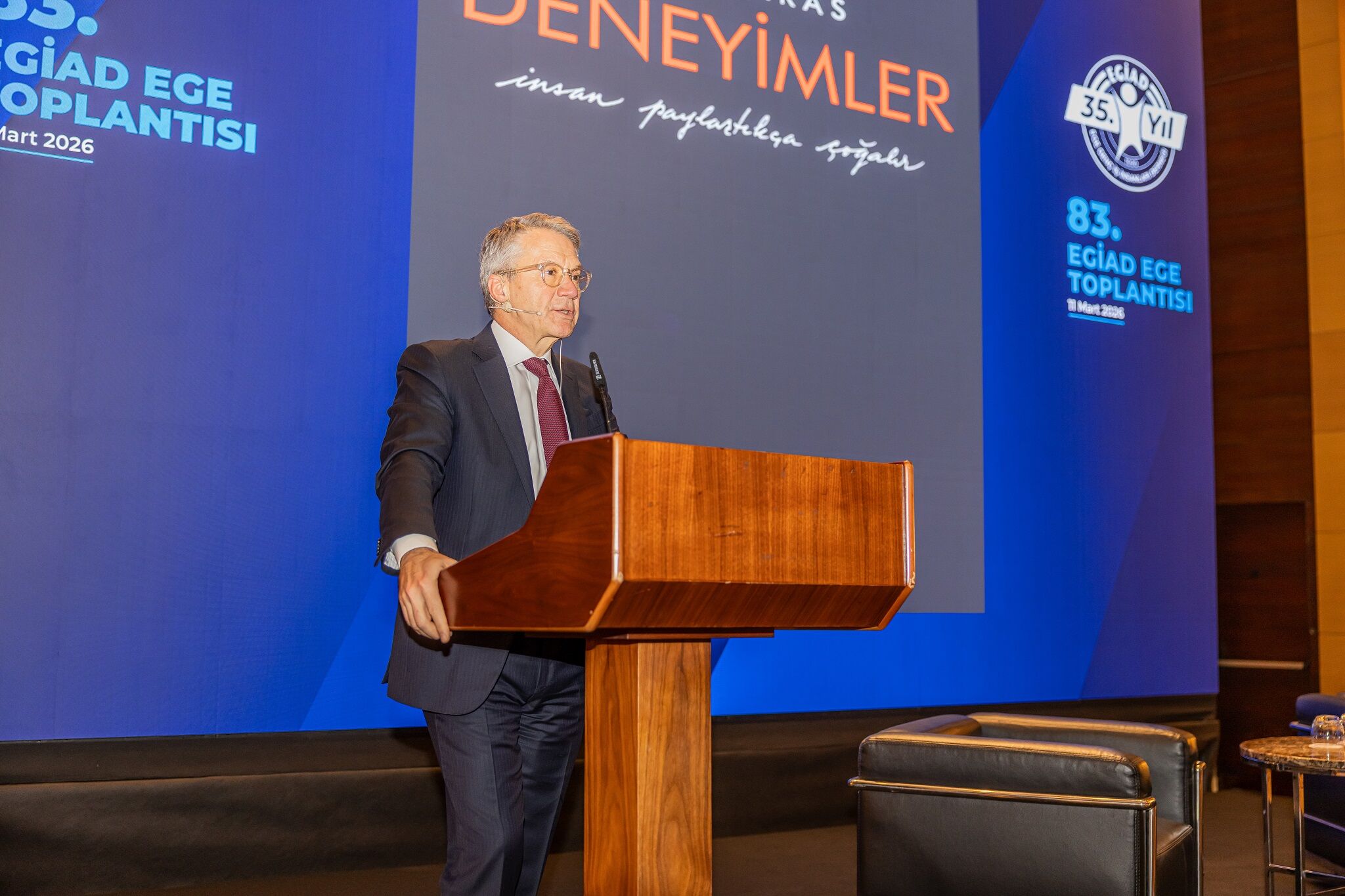 Toplantının açılış konuşmasını gerçekleştiren EGİAD Yönetim Kurulu Başkanı Kaan Özhelvacı, EGİAD’ın 35 yıllık kurumsal birikimiyle yalnızca bir iş dünyası örgütü değil, aynı zamanda bir liderlik ve vizyon platformu olduğunu vurguladı. 1990 yılında 47 genç iş insanının ortak idealiyle kurulan EGİAD’ın bugün 900’ü aşkın üyesi, üyelerinin temsil ettiği yaklaşık 3.500 şirket ve 150 bine yaklaşan istihdam gücüyle bölgesel kalkınmaya katkı sunan güçlü bir ekonomik aktör haline geldiğini belirten Özhelvacı, şunları söyledi: “EGİAD’ı yalnız sayılarla anlatmak eksik olur. EGİAD; Cumhuriyet değerlerinden güç alan, Atatürk ilke ve inkılaplarını rehber edinen ve iş dünyasını toplumsal sorumluluk bilinciyle buluşturan bir değer topluluğudur. Biz EGİAD’ı her zaman bir liderlik okulu olarak görüyoruz. Burada yetişen genç iş insanlarının yalnız şirketlerini değil, aynı zamanda toplumu ve geleceği şekillendiren liderler olmasını hedefliyoruz.” Özhelvacı, EGİAD Ege Toplantıları’nın yıllar içinde iş dünyasının önemli isimlerini İzmir ile buluşturan güçlü bir platforma dönüştüğünü belirterek Ömer Aras’ı ağırlamaktan duydukları memnuniyeti dile getirdi.