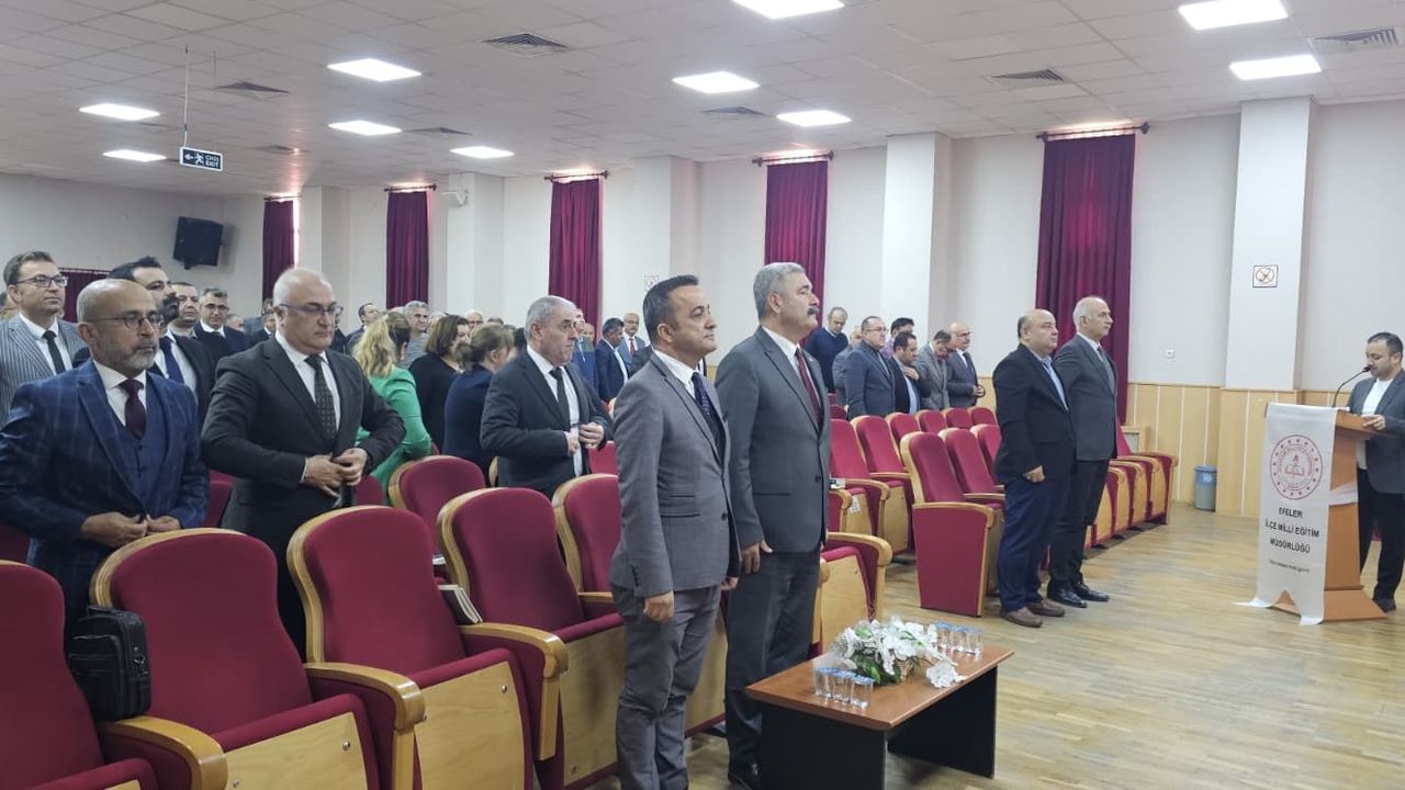 Gündem Haber - Efeler İlçe Milli Eğitim Müdürlüğü, okul yöneticilerinin mesleki ve entelektüel gelişimini desteklemek amacıyla yürütülen "Eğitim Yöneticileri Okuyor" projesinin yeni dönem açılış toplantısını gerçekleştirdi. İlçe Milli Eğitim Müdürü Hakan Özcan başkanlığında yapılan toplantıya, ilçedeki okul müdürleri yoğun katılım gösterdi. Bilim Akademisi koordinasyonunda sürdürülen proje, eğitim camiasında ortak bir sinerji oluşturmayı ve kurum kültürünü güçlendirmeyi amaçlarken, bu yılın ilk kitabı ise Prof. Dr. Hikmet Özdemir’in kaleme aldığı "Atatürk’ün Etik Mirası" adlı eser oldu.
