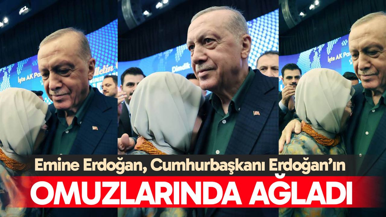 Salondaki duygu yoğunluğu kameralara da yansıdı. Konuşmasını tamamlayan Cumhurbaşkanı Erdoğan, eşi Emine Erdoğan’a yönelerek sarıldı. O anlar salonda bulunan davetliler tarafından uzun süre alkışlandı.