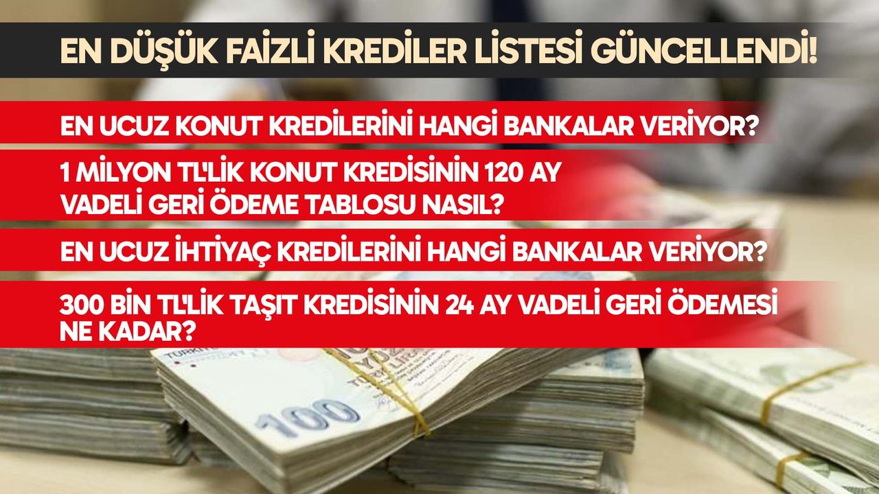 Türkiye Gazetesi'nde yer alan habere göre bu hafta bankalarca sunulan en ucuz konut kredileri şöyle sıralandı: