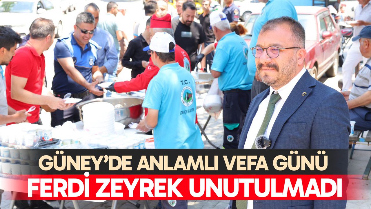 Güney Belediye Başkanı Mehmet Ali Eraydın, “Pazartesi günü aramızdan ayrılan Manisa Büyükşehir Belediye Başkanımız merhum Ferdi Zeyrek için verdiğimiz pilav hayrını gerçekleştirdik. Allah okunan Yasin-i şerifleri ve dualarımızı kabul etsin mekanı cennet olsun” ifadelerini kullandı.