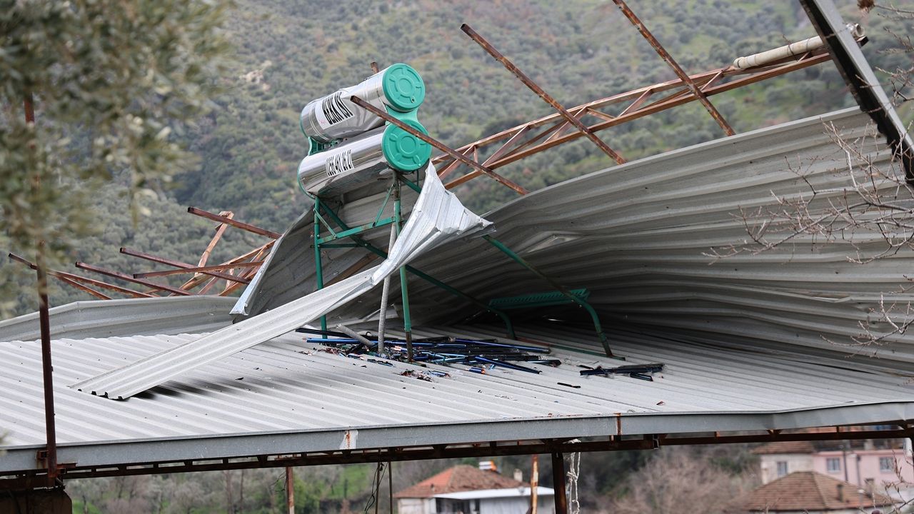 Yaşam Haber - Meteoroloji Bölge Müdürlüğü'nün yağış ve fırtına uyarısının ardından Aydın'ın Köşk içesine bağlı kırsal Başçayır, Cumayanı, Sarıçam ve Ahatlar mahallelerinde yağışla birlikte fırtına etkili oldu. Başçayır deresinden Çatma Yaylası'na kadar pek çok evin çatısı fırtınada zarar görürken bazı arazilerdeki zeytin ağaçlarının dalları da kırıldı. Cumayanı köyünün camisinin minaresinin de zarar gördüğü fırtınada çok sayıda evin çatısı zarar gördü.