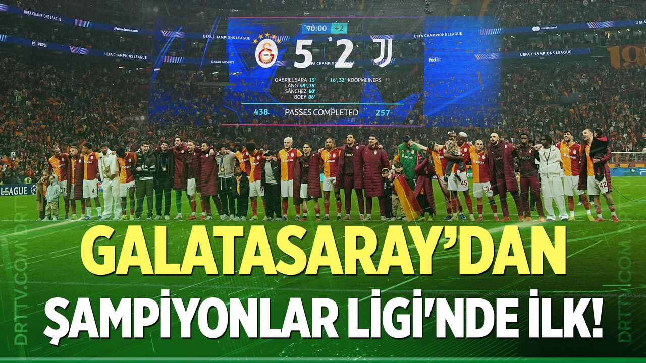 Spor Haber - UEFA Şampiyonlar Ligi son 16 play-off turunda Galatasaray, RAMS Park'ta karşı karşıya geldiği İtalyan takımı Juventus'u 2-1 geriye düşmesine rağmen 5-2'lik skorla mağlup etti.