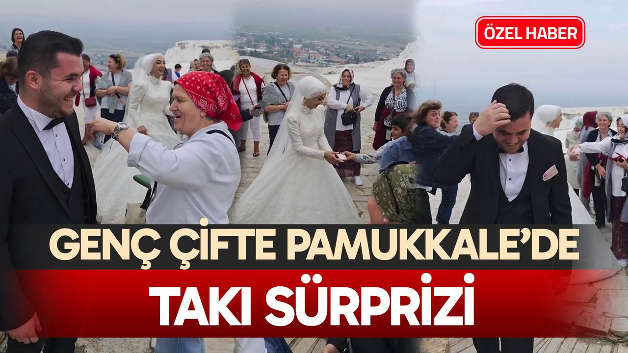 Denizli Haber - Ülkemizin en güzel adetlerinden ve geleneklerinden biri olan takı geleneği her yıl binlerce yerli ve yabancı turisti ağırlayan beyaz cennet Pamukkale’de yaşandı. Yeni evlenen çiftlere destek olmak amacıyla, yeni evlenen çiftin ailesi ve sevenleri tarafından takı, ülkemizin en güzel adet ve geleneklerinden biri. Bu gelenek ise bu kez Pamukkale’de yaşandı ve hem genç çifti hem de görenleri gülümsetti.