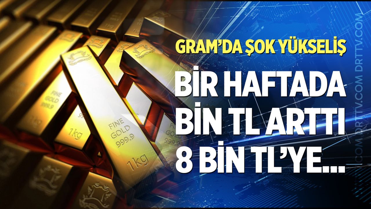 Böylece geçtiğimiz haftayı 7 bin TL seviyelerinde kapatan gram altın fiyatı, bir haftada yaklaşık (1.000) bin TL birden yükseldi ve 8 bin TL'ye dayandı.