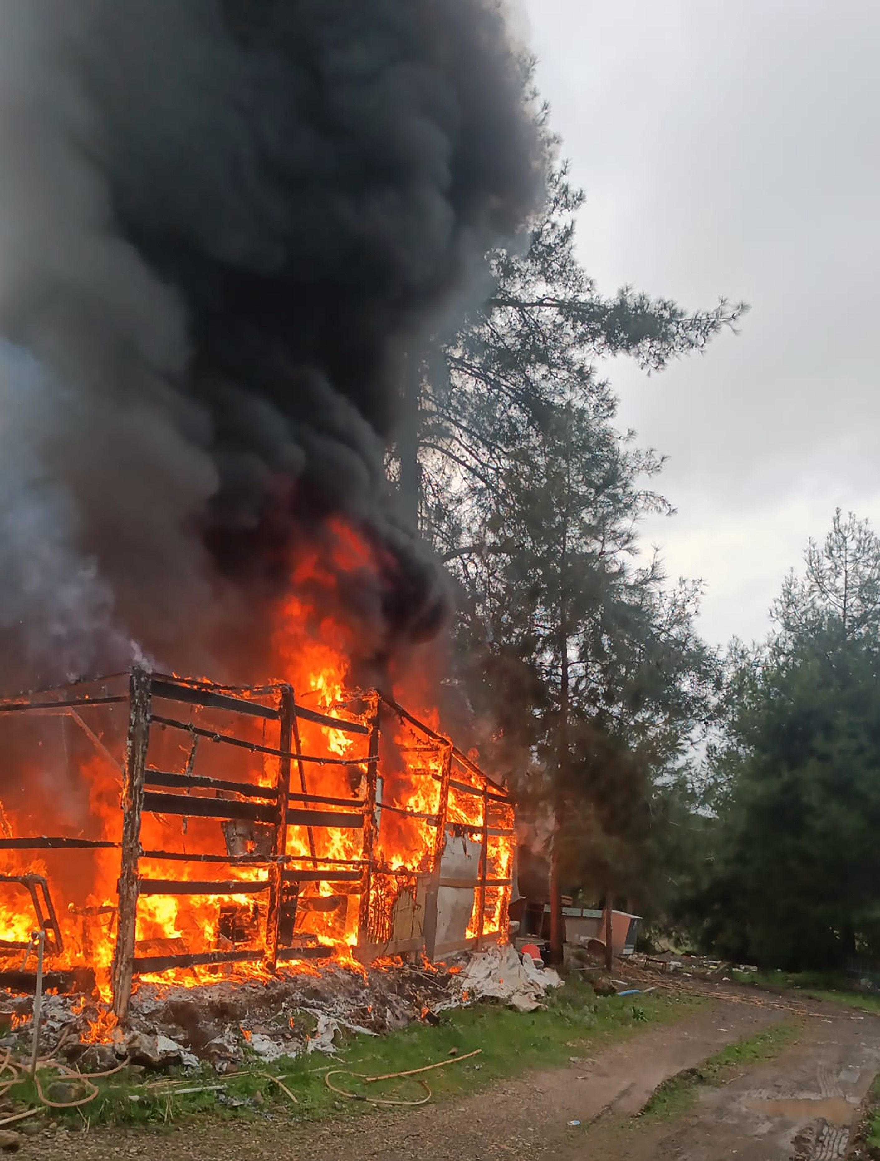 İtfaiye ekipleri yanan hasır eve müdahale ederek söndürdü.