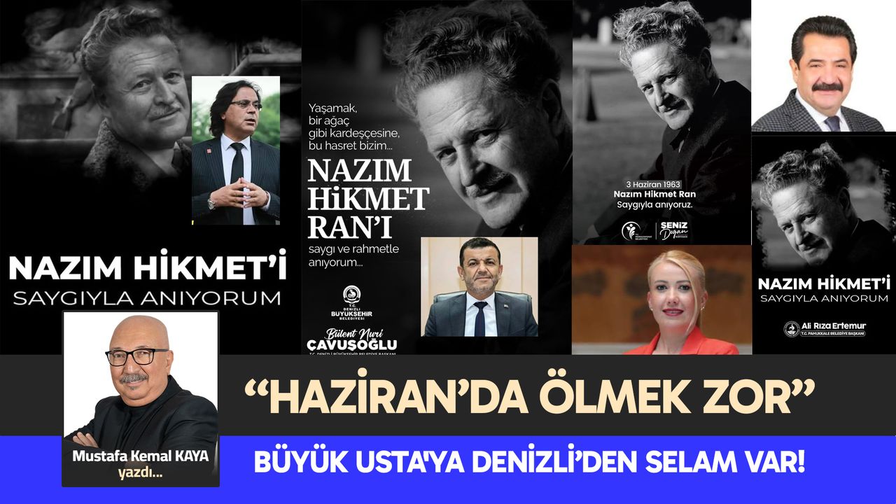 İşte bu yüzden biz de ölümünün 62. Yılında büyük Usta Nazım Hikmet’i sosyal medya hesaplarında ve paylaşımlarında anan ve selamlayan CHP İl Başkanı Ali Osman Horzum, Merkezefendi İlçe Başkanı Müjdat İlhan, Pamukkale İlçe Başkanı Uğur Coşkun, Denizli Büyükşehir Belediye Başkanı Bülent Nuri Çavuşoğlu, Merkezefendi Belediye Başkanı Şeniz Doğan, Pamukkale Belediye Başkanı Ali Rıza Ertemur’a “Haziran’da ölmek zor, halka hizmet yolunda yaşamak daha zor” diyoruz.. Ve Nazım Hikmet Ran’a Denizli’den büyük bir selam gönderiyoruz…