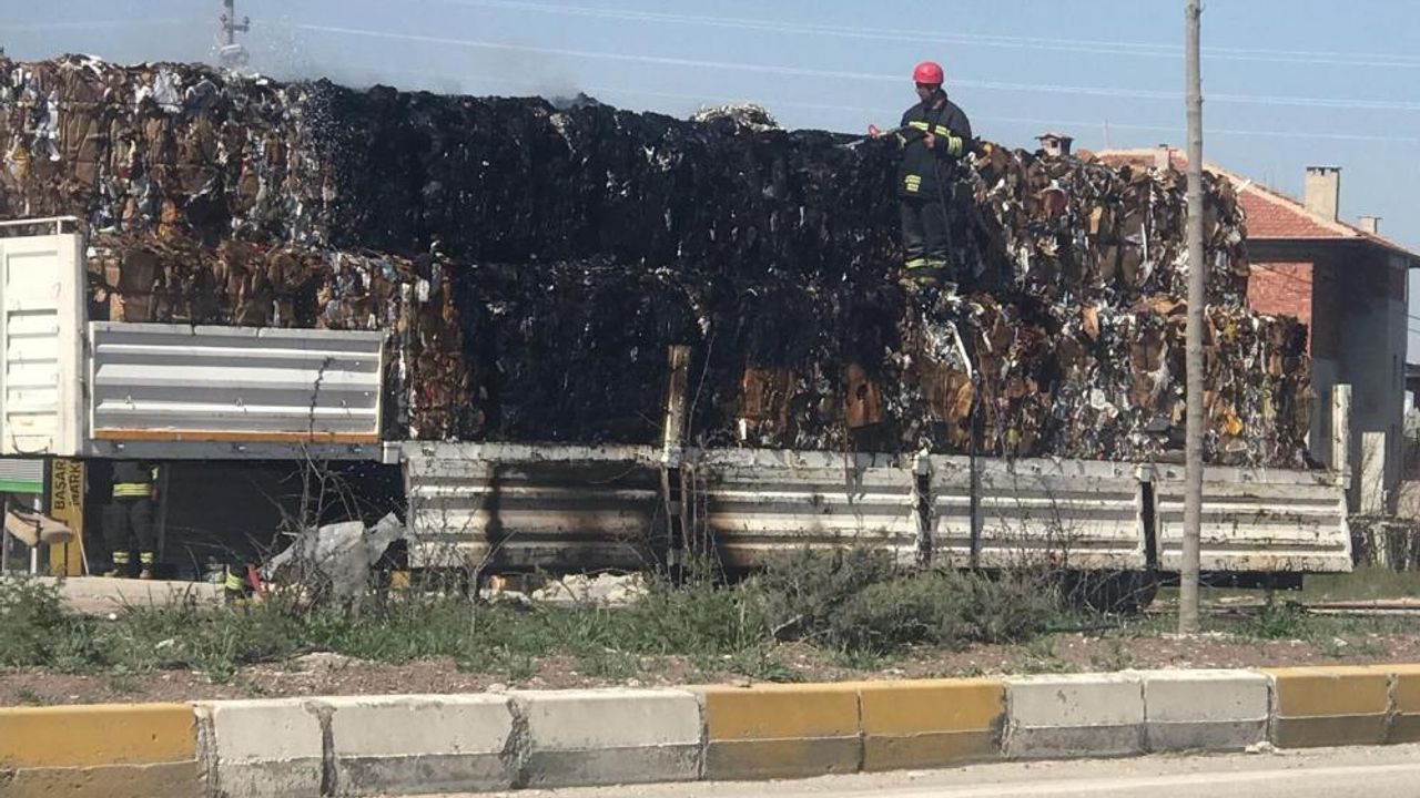 Konya'nın Ereğli ilçesinde hurda ve kağıt taşıyan tırın dorsesinde çıkan yangın paniğe neden oldu.