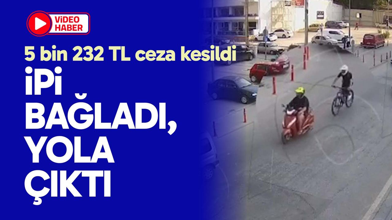 Yapılan incelemelerde motosikletin bağladığı iple bisikleti Cafer Sadık Abalıoğlu Bulvarı üzerinde kilometrelerce çektiği görüldü. Vatandaşlar tarafından görüntülerde ise bisiklet sürücüsünün dengesini güçlükle sağladığı dikkatlerden kaçmadı.