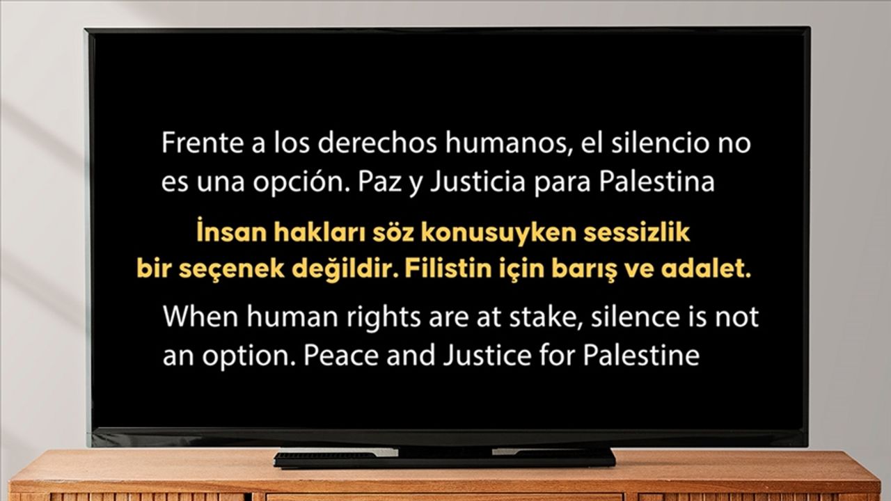 Dünya Haber - RTVE, Eurovision Şarkı Yarışması canlı yayınına geçmeden önce İspanyolca ve İngilizce dillerinde "İnsan hakları söz konusu olduğunda, sessizlik bir seçenek değildir. Filistin için barış ve adalet." yazılı bir mesaj yayımladı.