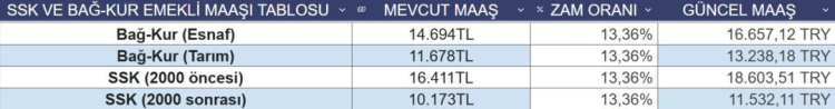 EMEKLİ ZAM TABLOSU: