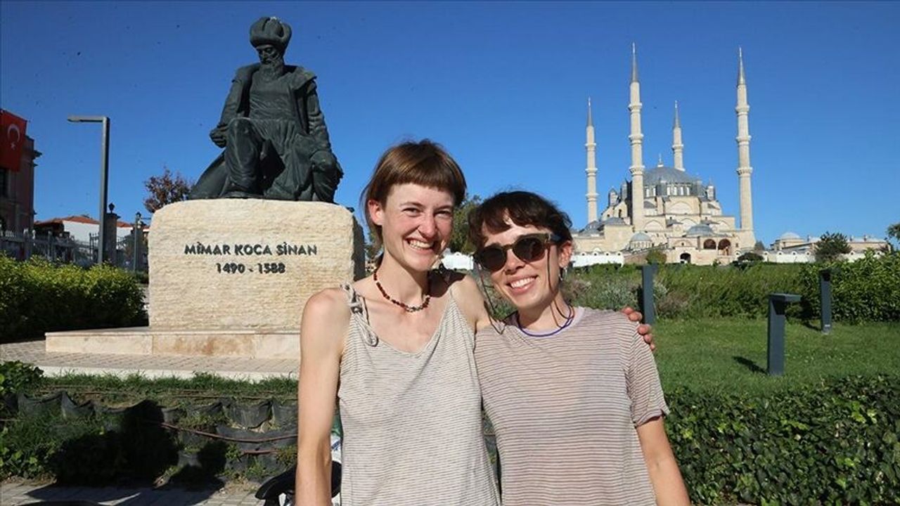 Edirne’nin yöresel lezzetlerini tadan gezginler, Saraçlar Caddesi ve Selimiye Meydanı'nda pedal çevirdi, Mimar Sinan heykeli ile Selimiye Camisi önünde hatıra fotoğrafları çekti.