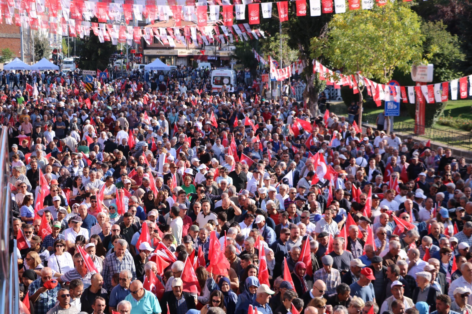 "Milletin huzur ve refahını feda ediyorlar. Bugün 1 gram altın 5 bin TL'yi geçti. 23 yıl önce emekli maaşı ile 8 çeyrek alınıyordu, en düşük emekli aylığıyla 3 çeyrek altın alınıyordu. Asgari ücretli 7 çeyrek alıyordu, asgari ücret bugün 22 bin TL gibi açlık sınırının altında yani hiç ilişmeseler emekçiye dokunmasalar 50 bin TL alacaklardı. Asgari ücretli Erdoğan'dan kurtulursan asgari ücret 50 bin, emekli maaşın 56 bin TL olur. Herkes hesabı böyle yapsın. Memur ayda 9 çeyrek altın kaybetmiş. Öğrenciler burs ücreti olarak gram altının yarısı tutarlarını alıyor. Bunlardan önce öğrenci bursu 1,5 çeyrek altın alıyordu. İktidar asgari ücretliye, emekliye, öğrenciye ve çiftçiye iyi gelmedi. Bu iktidar sadece ve sadece yandaşa, zengine iyi gelen bir iktidardır. Bu memlekette yüzde 20 olan zengin gelirin yüzde 90'nını, geri kalan yüzde 90'san ise yüzde 10'nu alıyor. Kimsesizlerin kimsesi olmaya geliyoruz. Emeklinin partisi CHP'dir. Asgari ücretlinin partisi CHP'dir. Öğrencinin ve çiftçilerin partisi CHP'dir. CHP Türkiye'nin birinci partisi."
