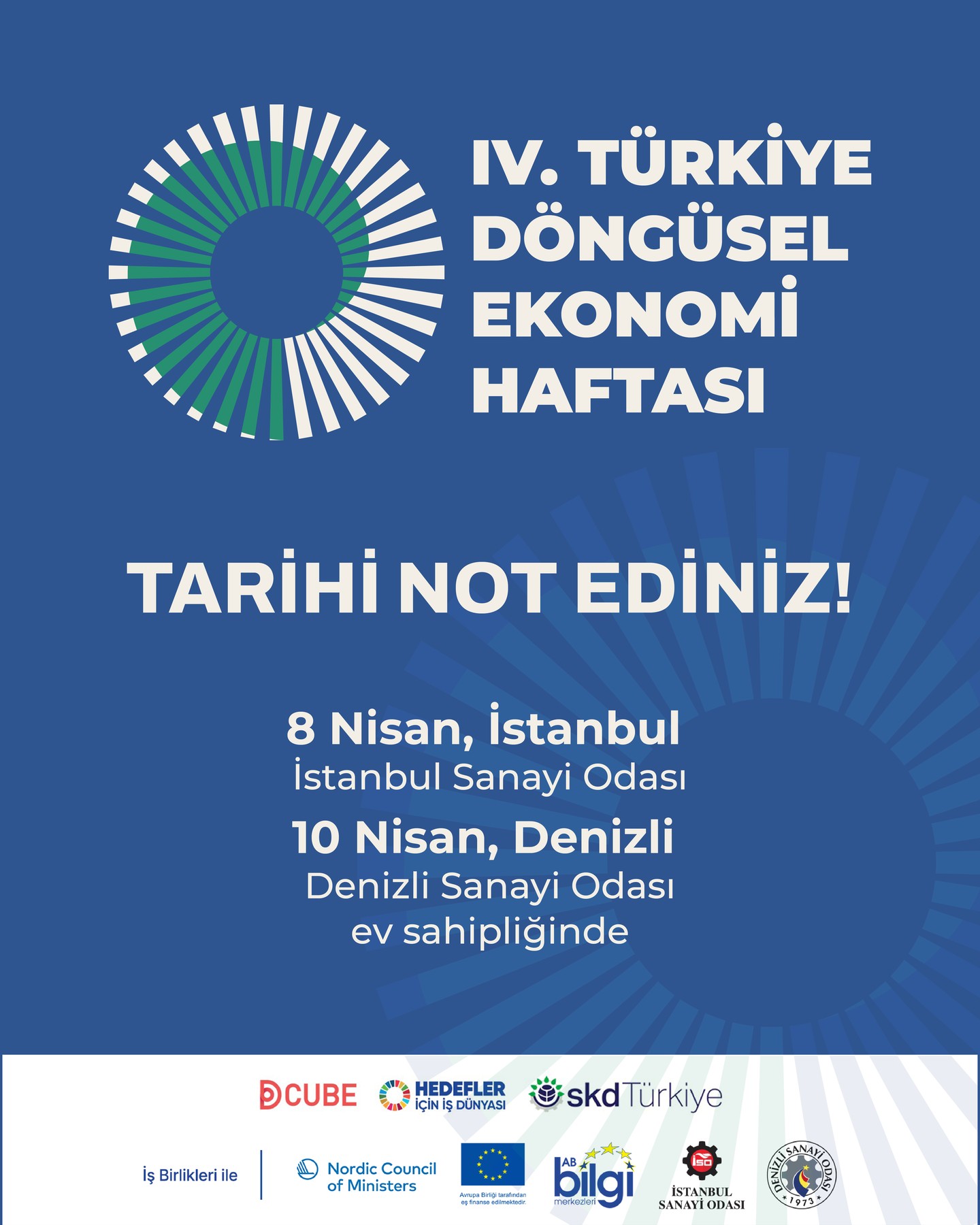 IV. Türkiye Döngüsel Ekonomi Haftası, 8 Nisan’da İstanbul Sanayi Odası (İSO) ve 10 Nisan’da Denizli Sanayi Odası (DSO) ev sahipliğinde gerçekleştirilecek. Bu yılki etkinlik, “Döngüsel Ekonomi ile Dönüşüm Zamanı” temasıyla düzenlenecek ve Türkiye'nin yeşil dönüşüm sürecinde atılan önemli adımların döngüsel ekonomi bakış açısıyla ele alınmasını sağlayacak.