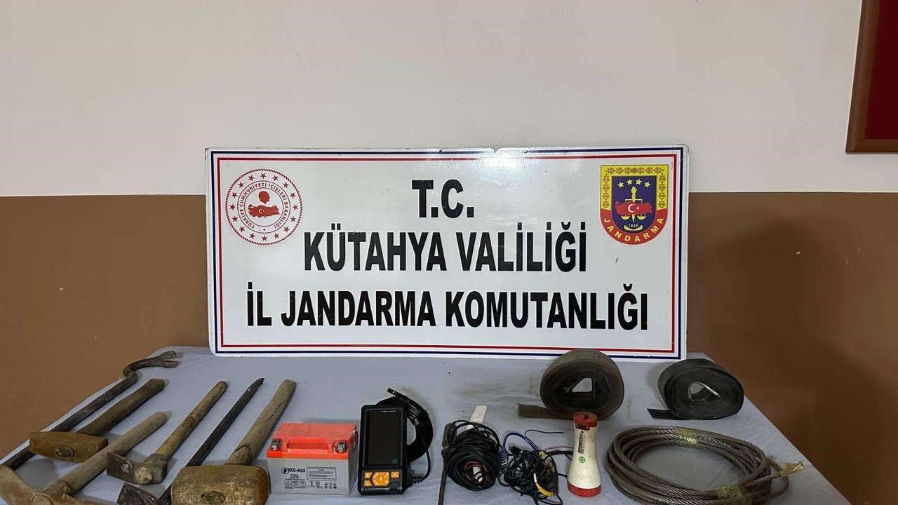 Gündem Haber - Kütahya İl Jandarma Komutanlığı unsurlarınca il genelinde kaçakçılık suçları ile mücadele kapsamında yapılan çalışmalar sonucu, Gediz ilçesi Yenikent beldesinde izinsiz kazı yapan şahıslara yönelik yapılan operasyonda, 2 adet levye, 2 adet yılan kamerası,1 adet balyoz,1 adet çekiç,1 adet çapa,1 adet el feneri, 1 adet keser, 1 adet akü ele geçirildi.