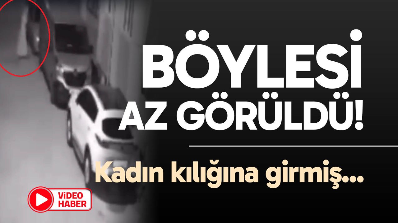 Hırsızın kadın kıyafeti ile gece karanlığında hırsızlık yaptığı anlar ise saniye saniye kameralara yansıdı.