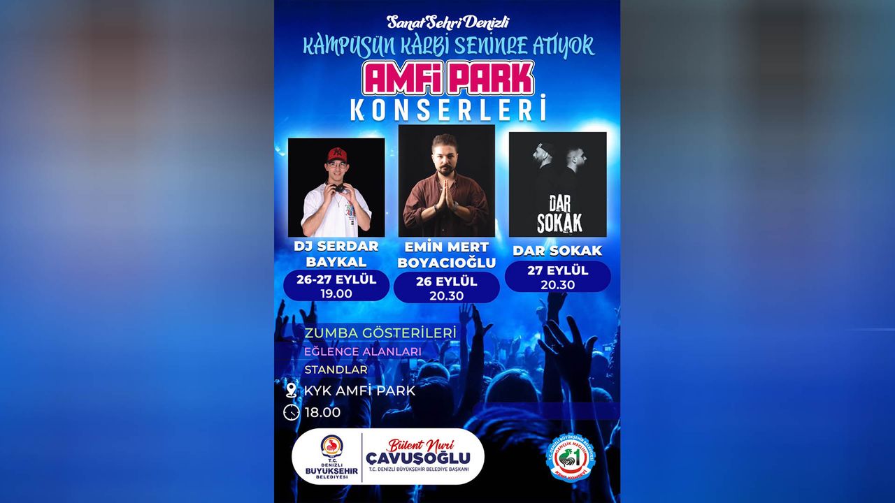 Denizli Haber - Program kapsamında, DJ Serdar Baykal her iki gün de saat 19.00’da sahne alarak etkinliği coşturacak. 26 Eylül Cuma günü saat 20.30’da gençlerin sevdiği isim Emin Mert Boyacıoğlu konser verecek. 27 Eylül Cumartesi ise yine aynı saatte Dar Sokak grubu sahneye çıkarak etkinliği final coşkusuyla taçlandıracak. Konserlerin yanı sıra zumba gösterileri, eğlence alanları ve çeşitli stantlar kurularak katılımcılara keyifli anlar yaşatılacak. Etkinlik alanı her iki gün de saat 18.00’den itibaren öğrenciler için hazır olacak.