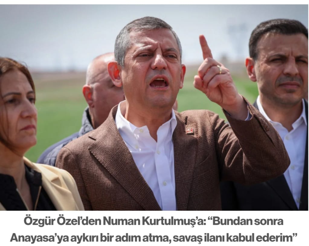 TBMM Başkanı Numan Kurtulmuş’a seslenen CHP Genel Başkanı Özgür Özel, "Dün o hataya ortak olmayıp Meclis Başkan Vekilliği görevi sırasında kararı okutan Gülizar Biçer Karaca doğrusunu yaptı. Memlekette Anayasa Mahkemesi kararlarına uyulmamasına ilişkin yargılama olsa Numan Kurtulmuş ceza alır. Gülizar Biçer Karaca da beraat eder. Gülizar Biçer Karaca belki de Numan Kurtulmuş’u da kurtardı yaptığı işle…Tayyip bey savaş ilan etmişti, başımın üstüne demiştim. Numan Bey’e söylüyorum sakın bize savaş ilan etme, meclis başkanvekilimi tehdit etme savaş ilanı kabul ederim" dedi.