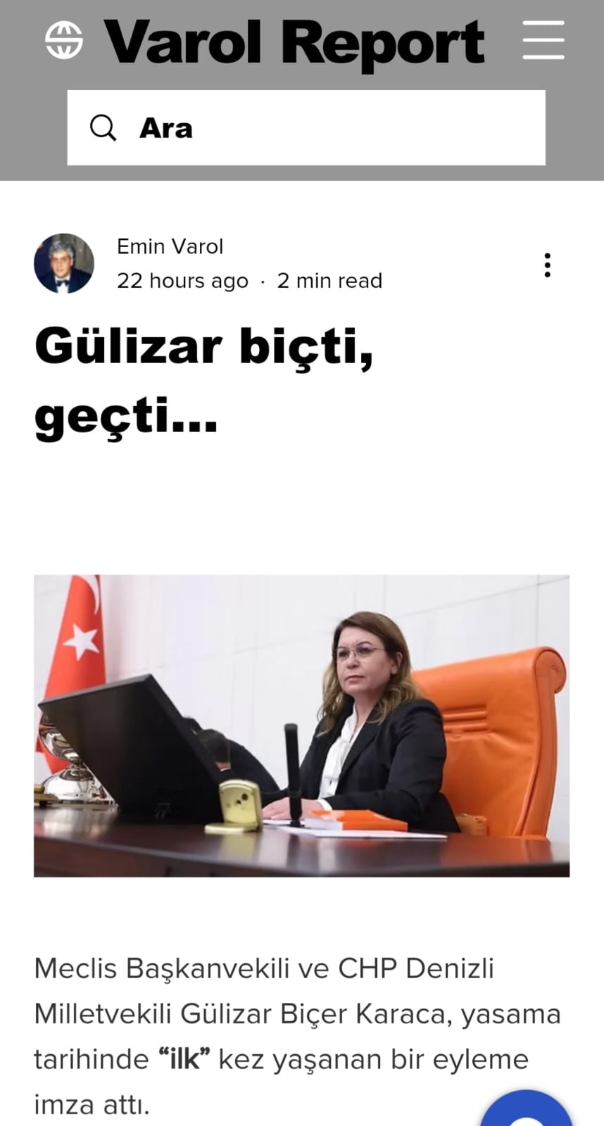 Gazeteci Emin Varol; Gülizar Biçer Karaca’nın yönettiği TBMM oturumunda spontan bir şekilde Anayasa Mahkemesi’nin (AYM) verdiği ve Meclis Başkanı Numan Kurtulmuş tarafından aylardır okutulmayan Can Atalay Kararı’nı okutmasını olayını yazdı. Parlamento, diplomasi ve Başkent Siyasetinin deneyimli gazetecilerinden Emin Varol “Gülizar biçti, geçti…” başlıklı etkili bir değerlendirmeyi köşesine taşıdı. Varol Köşesi’nde özetle, “Meclis Başkanvekili ve CHP Denizli Milletvekili Gülizar Biçer Karaca, Hatay’dan milletvekili seçilmesine rağmen cezaevinde yatan Can Atalay’la ilgili Anayasa Mahkemesi kararını okutarak AKP grubuna büyük bir “gol” attı. 27 dakika süren Meclis Genel Kurulu’nda sürpriz bir kararla, Atalay ile ilgili kararın hüküm kısmını okutan Karaca’yı muhalefet ayakta alkışladı. AKP grubu ise kararın okutulmasını durdurmak için her şeyi yaptı. Ancak, karar okunarak meclis tarihine bir “ilk” olarak geçti. Muhalefetin tuzağına düşen AKP grubuna Erdoğan'ın ne ceza vereceği merak ediliyor. TBMM Başkanvekili ve CHP Denizli Milletvekili Gülizar Biçer Karaca’nın yönettiği oturumda okunan AYM kararı sonrası bazı milletvekillerinin itiraz ettikleri görüldü” yorumuna yer verdi.