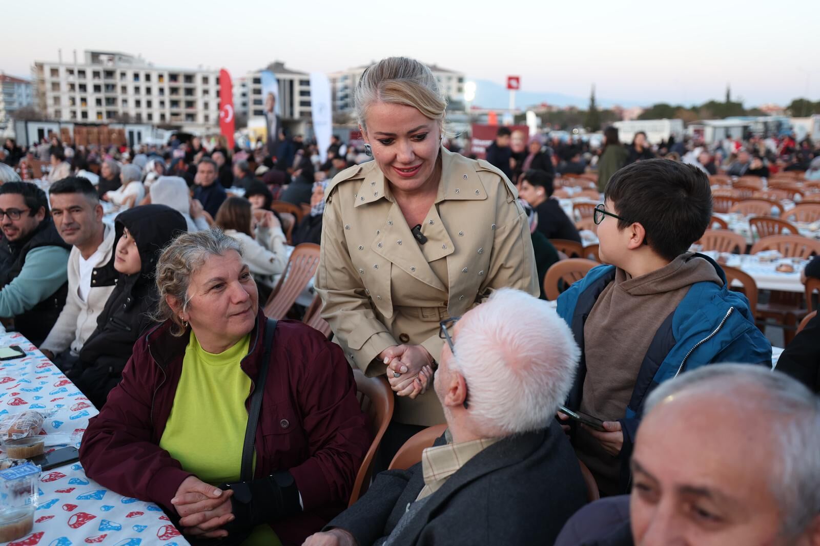 Büyük bir aşkla çalıştıklarını belirten Başkan Doğan, “Bu Ramazan ayının güzel gününde dostluğu, paylaşmayı, birlikteliği ve beraberliği sizinle yaşamak için bu gönül soflarını kurduk. Bugün bu alanda yaklaşık 7 bin hemşerimiz ile iftarımızı açtık. İyi ki varsınız, her şey sizinle güzel. Bu ramazan sofraları sizinle birlikte bereketli, sizinle birlikte daha da anlamlı. Biz ne zaman bu gönül sofralarını kursak sizler doldurup taşırıyorsunuz. Biz sizlerden aldığımız güçle, sizlerden aldığımız enerji ile çalışıyoruz. Ben inanıyorum ki halkın gücünü, halkın desteğini yanınızda hissettikten sonra hiçbir kuvvet sizleri durduramaz. Bütün baskılara bütün sıkıntılara rağmen sizlerden aldığımız güçle yapıyoruz. Sözümüz ‘Çalıştıkça Büyür Aşkımız’ o yüzden birbirimize olan sevgimiz bitmediği sürece bu mücadeleye, bu çalışmaya devam ediyoruz” diye konuştu.
