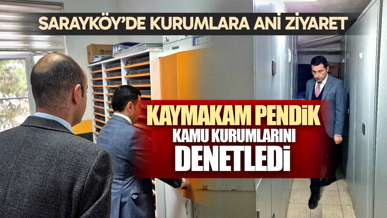 Denizli Haber - Denizli’nin Sarayköy İlçesinde kamu kurumları sabah saatlerinde Kaymakam Dr. İsmail Pendik tarafından yapılan ani ziyaretler ile denetlendi. Sabah saatlerinde kamu kurumlarına giden Sarayköy Kaymakamı Dr. İsmail Pendik’in ilk denetimi Yazı İşleri Müdürlüğü’ne oldu. Kaymakamlık binasında Yazı İşleri Müdürlüğü’nü denetleyen Kaymakam Pendik, eksiklikler ve yapılması gerekenler hakkında uyarılarda bulundu.