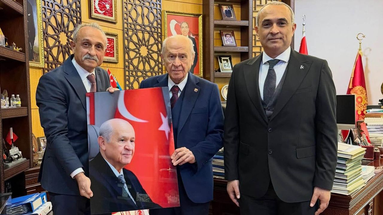 Denizli Haber-Milliyetçi Hareket Partisi (MHP) 21. Dönem Denizli Milletvekili Ali Keskin ile önceki dönem MHP Milletvekili aday adayı Salih Keskin, MHP Genel Başkanı Devlet Bahçeli’yi makamında ziyaret etti. Ziyarette, “Benim aklım hep Türkiye’dir” sözleriyle Türk siyasetine damga vuran MHP Lideri Devlet Bahçeli’ye anlamlı bir hediye takdim edildi. Ali Keskin ve Salih Keskin, cam üzerine işlenmiş Türk Bayraklı ve kendi portresinden oluşan bir tabloyu Bahçeli’ye sundu.