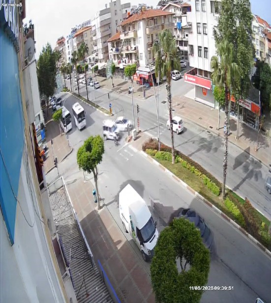 Çarpışmanın etkisiyle otomobil karşı şeride geçerek yol ortasında durabildi. Kazada şans eseri yaralanan olmazken, o anlar çevredeki bir güvenlik kamerası tarafından saniye saniyesine kaydedildi.