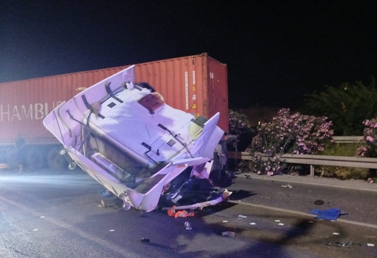 Gündem Haber - Kaza, İzmir-Çanakkale yolu Biçerova mevkiinde meydan geldi. Edinilen bilgiye göre, Bergama istikametine seyir halinde olan Ö.Y. idaresindeki konteyner yüklü tır, sürücüsünün henüz bilinmeyen bir nedenle direksiyon hakimiyetini kaybetmesi sonucu yolun solundaki bariyerlere çarptı. Kazada, sürücü Ö.Y. ve yolcu L.E. yaralandı. Olay yerine sağlık, polis, itfaiye ve jandarma ekipleri sevk edildi. İtfaiye ekipleri tarafından sıkıştıkları yerden çıkarılan yaralılar Aliağa Devlet Hastanesi'ne kaldırıldı.