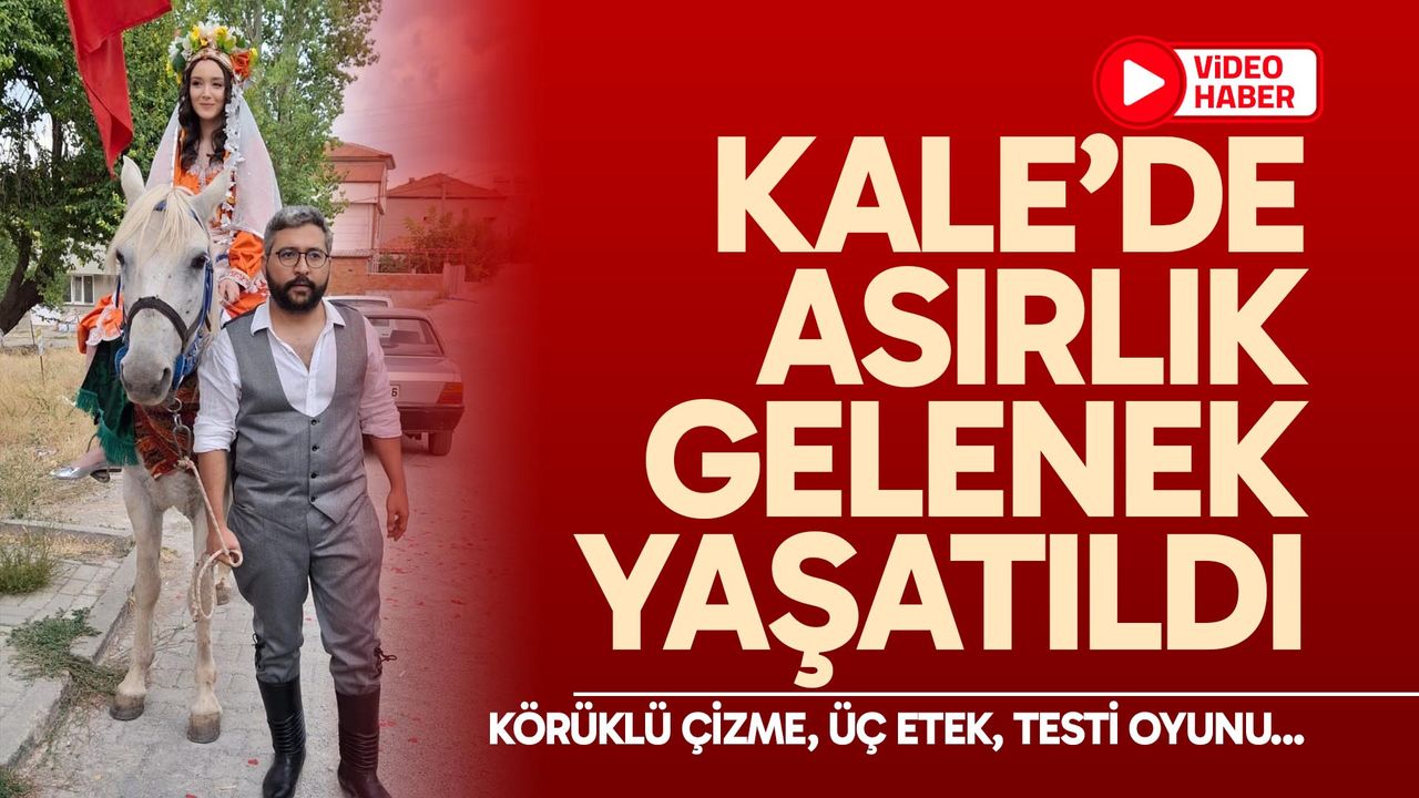 Denizli Haber - Denizli’nin Kale İlçesinde gerçekleşen geleneksel düğünde genç çift gelenekleri yaşattı. Gelin alayı ilk olarak damadın sağdıçlarını almak için yola çıktı. Davulla zurnayla alınan sağdıçlar damadın evine bir tepsi meşhur Kale baklavası ile geldi. Beyaz atına binen damat Fevzi Alperen Ersoy ve gelin alayı, davul zurna eşliğinde gelini almak için yola çıktı. İlçenin geleneksel üç etek isimli kıyafetini giyen gelin, oğlan evine geldi. Burada gelin Ceren Yılmaz testi oyununu oynadı ve testiyi kırdı.