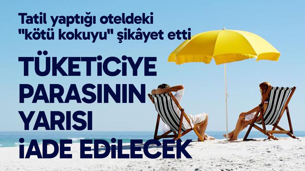 Ailesiyle otele gittiğinde "otelin temiz olmadığı ve lağım kokusu hissedildiğini" öne süren Doğan B., acenteyi arayarak rezervasyonunun iptalini talep ederek, ücretinin iade edilmesini istedi.