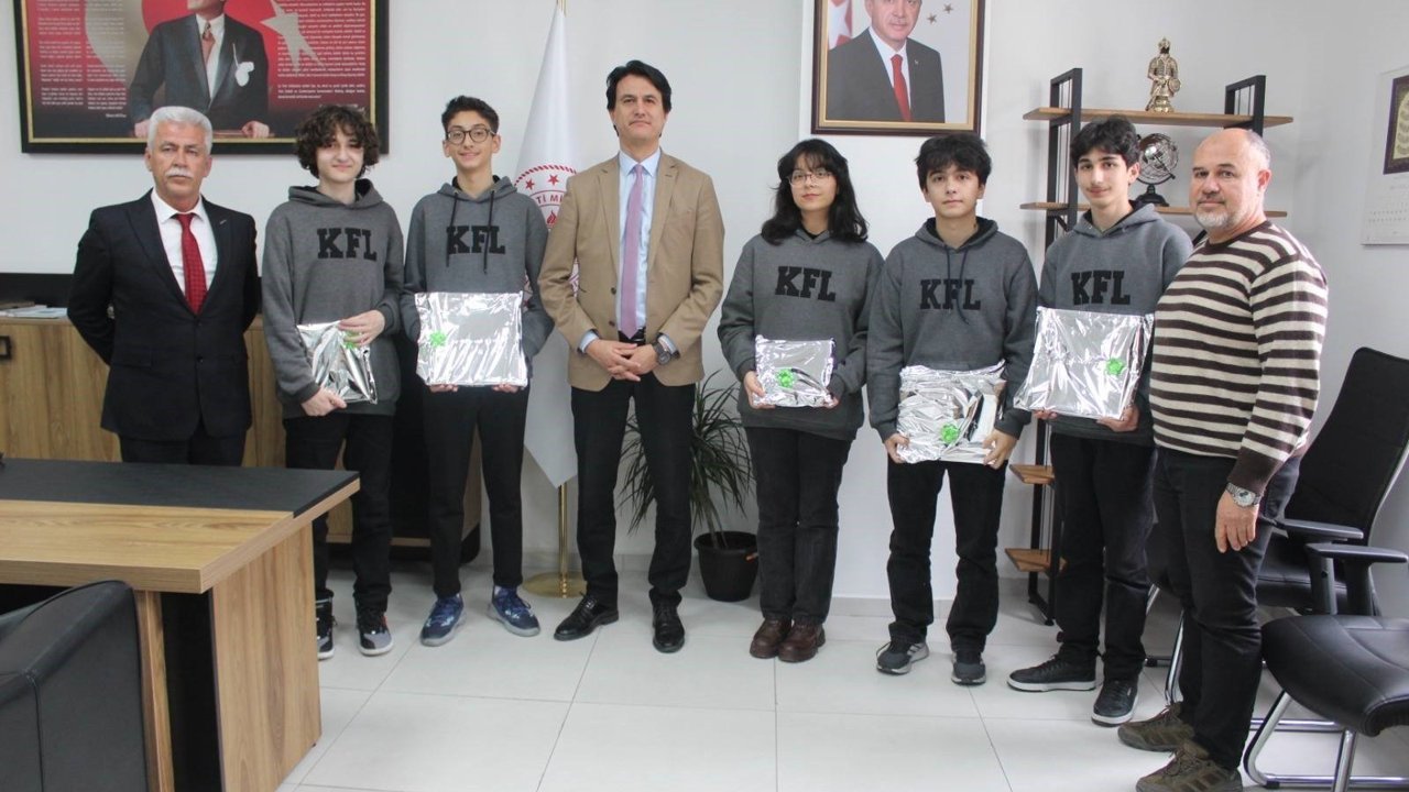 Marmaris’te düzenlenen TUA Astro Hackathon Muğla yarışmasında birincilik elde eden ve ili Türkiye finallerinde temsil edecek olan Köyceğiz Fen Lisesi Kefal-X Takımı, İlçe Milli Eğitim Müdürü Taner Şen, Okul Müdürü İbrahim Turgut, Müd. Yrd. Zafer Ersoy ile birlikte Köyceğiz Kaymakamı Mert Kumcu’yu ziyaret etti. Göstermiş oldukları başarıdan dolayı öğrencileri tebrik eden Kaymakam Kumcu, TUA Astro Hackathon Türkiye Finallerinde başarılar diledi. Heyet daha sonra İlçe Milli Eğitim Müdürü Taner Şen’e ziyaret gerçekleştirdi. Şen, öğrencileri tebrik ederek, Türkiye Finallerinde başarılar diledi. Ayrıca hediye takdiminde bulundu.