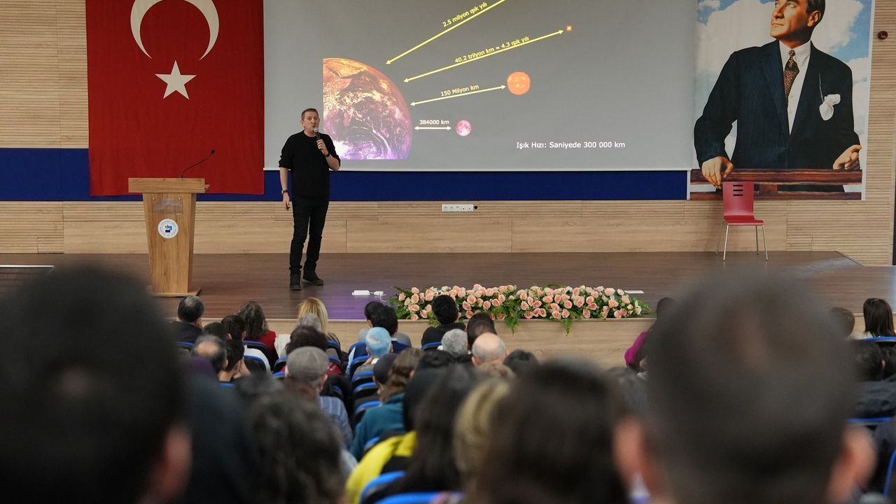 Denizli Haber - Pamukkale Üniversitesi Eğitim Fakültesi Melek Sözkesen Konferans Salonu’nda düzenlenen, öğrenciler ve akademik personelin yoğun ilgi gösterdiği konferansta, konuşmacı Dr. Umut Yıldız tarafından evrenin oluşumu, kozmik süreçler ve modern kozmolojinin temel kavramları bilimsel bir çerçevede ele alındı. Katılımcılar, evrenin başlangıcından olası sonuna kadar uzanan süreçlere ilişkin güncel bilimsel yaklaşımlar hakkında kapsamlı bilgiler edinme imkanı buldu. Dr. Umut Yıldız, temel bilimler alanında farkındalığın artırılması amacıyla evrenin gizemlerine dair paylaştığı bilimsel değerlendirmelerle katılımcıları derin ve ufuk açıcı bir bilim yolculuğuna çıkardı. Konferans, soru-cevap bölümünün ardından sona erdi.
