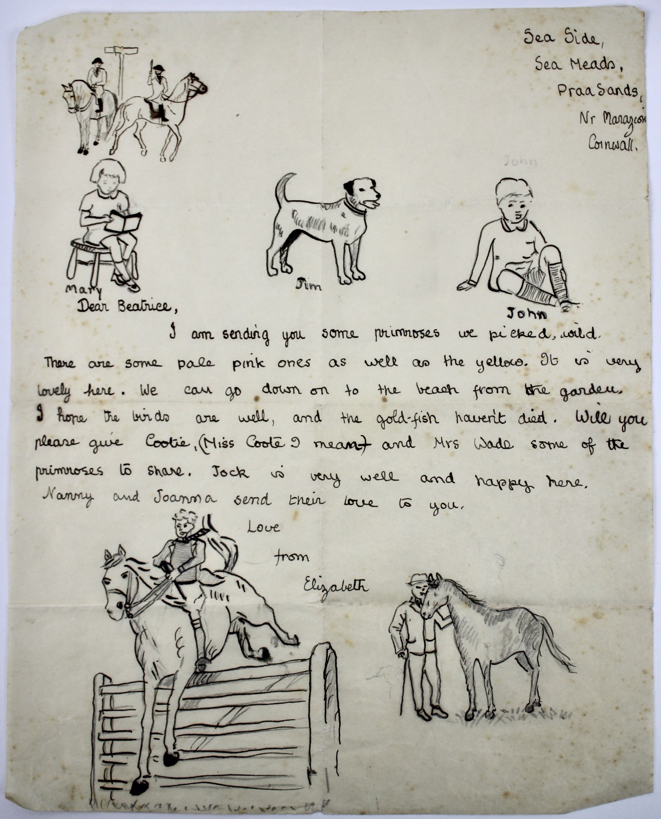 Mektupta Elizabeth’in Cornwall’daki bir tatilden bahsettiği, topladığı çuha çiçeklerini paylaştırmak istediği ve “kuşlar iyi mi, balıklar ölmedi değil mi?” gibi sevgi dolu ifadeler kullandığı belirtiliyor.